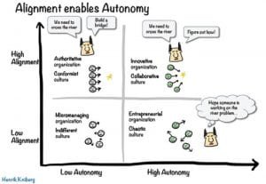 The counterpart to autonomy is alignment. Alignment is getting people to all pull in the same direction. Alignment is what enables autonomy. The stronger the alignment within the team, department or organization, the more autonomy you can grant, because you don’t have to worry that people are going in a million different directions.